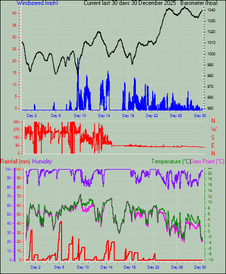 | Maximum Gust (since 9am) | 10.9 mph at: 10:00 | Maximum 1 minute average (since 9am) | 8.7 mph at: 15:41 |